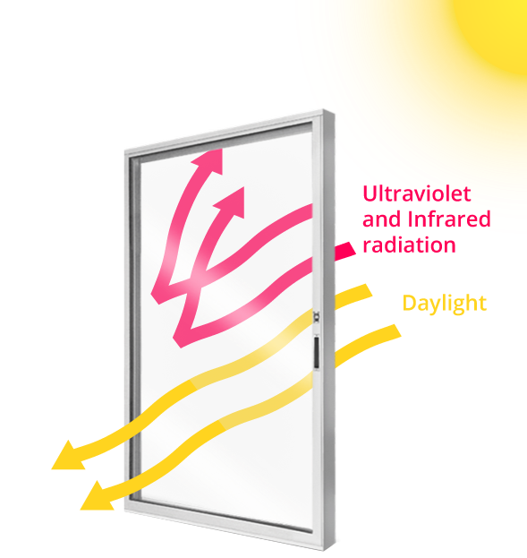 SunLight Seal is invisible and allows natural light to penetrate while blocking UV rays. It also blocks most infrared rays by reflecting them: